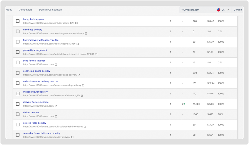 Visibility is a great metric for a quick comparison of two or more websites. Check your Visibility against theirs. Who is out-competing who? Has a competitor outperformed you in the past or vice versa? Who's leading the field, and how big is the gap between you and your fiercest competitor? Answering those questions will help you develop an SEO strategy to come out (and stay) at the top of your niche.